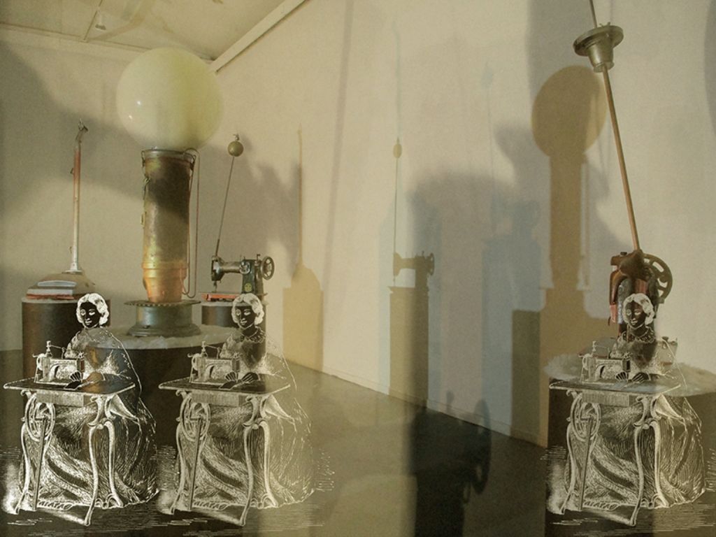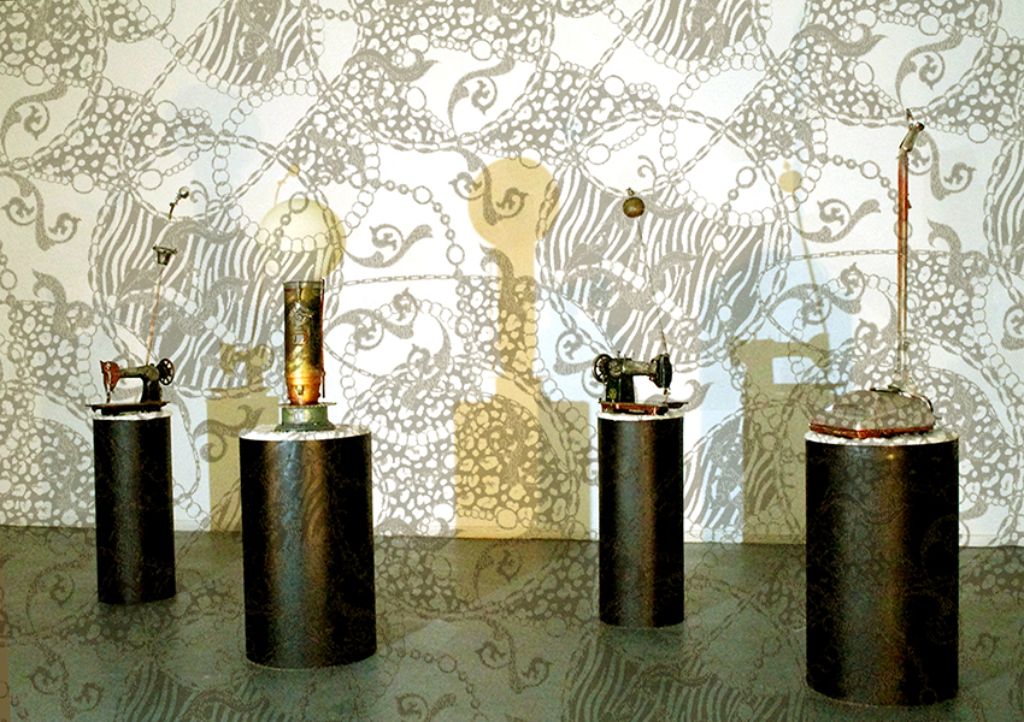 La instalación consiste en un montaje compuesto por una serie de cuatro objeto- esculturas, realizados con artefactos vinculados especialmente a las labores domésticas de la mujer.